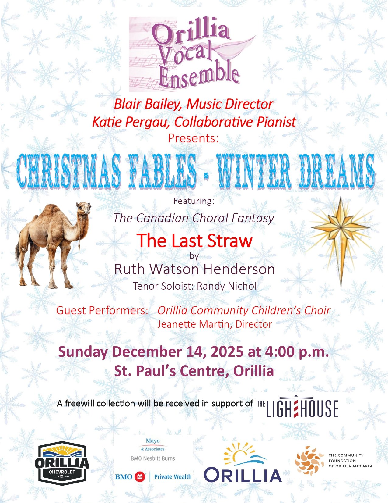 We are delighted to, once again, welcome some of our Orillia Vocal Ensemble friends, as well as guest soloists from the Simcoe County area to join us!