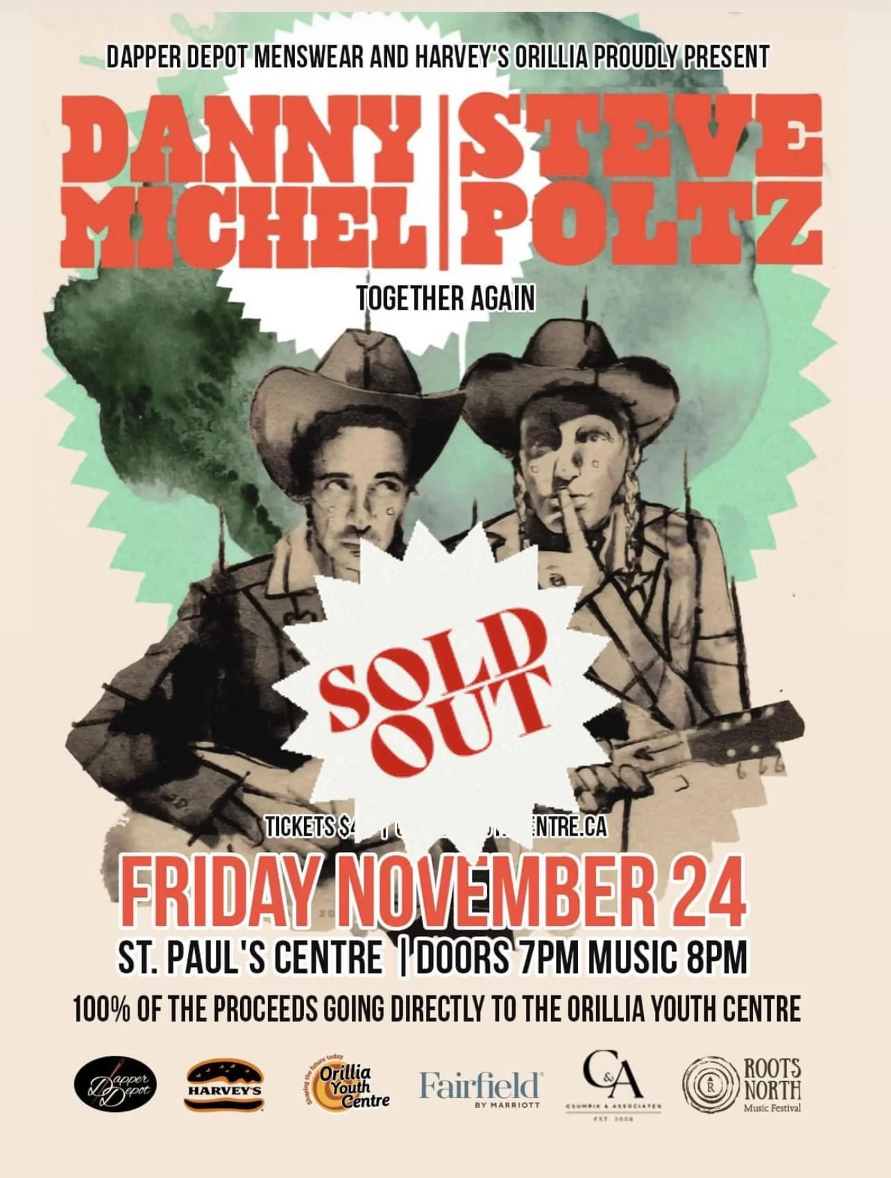 A special thanks to Dapper Depot Menswear, Harvey's Orillia, Fairfield Inn & Suites By Marriott Orillia, The Orillia Youth Centre, Csumrik and Associates, and Roots North Music Festival.